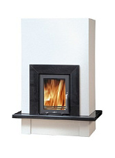 Каминная топка с прямым стеклом. Топочная камера футерована шамотом. Подъёмный механизм двери (система Easy-Lift). Ширина дверки 851 мм. Высота дверки 502 мм. Возможно подключение воздуха извне.